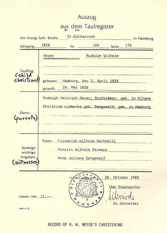 R.W. Meyer - Baptism Certificate